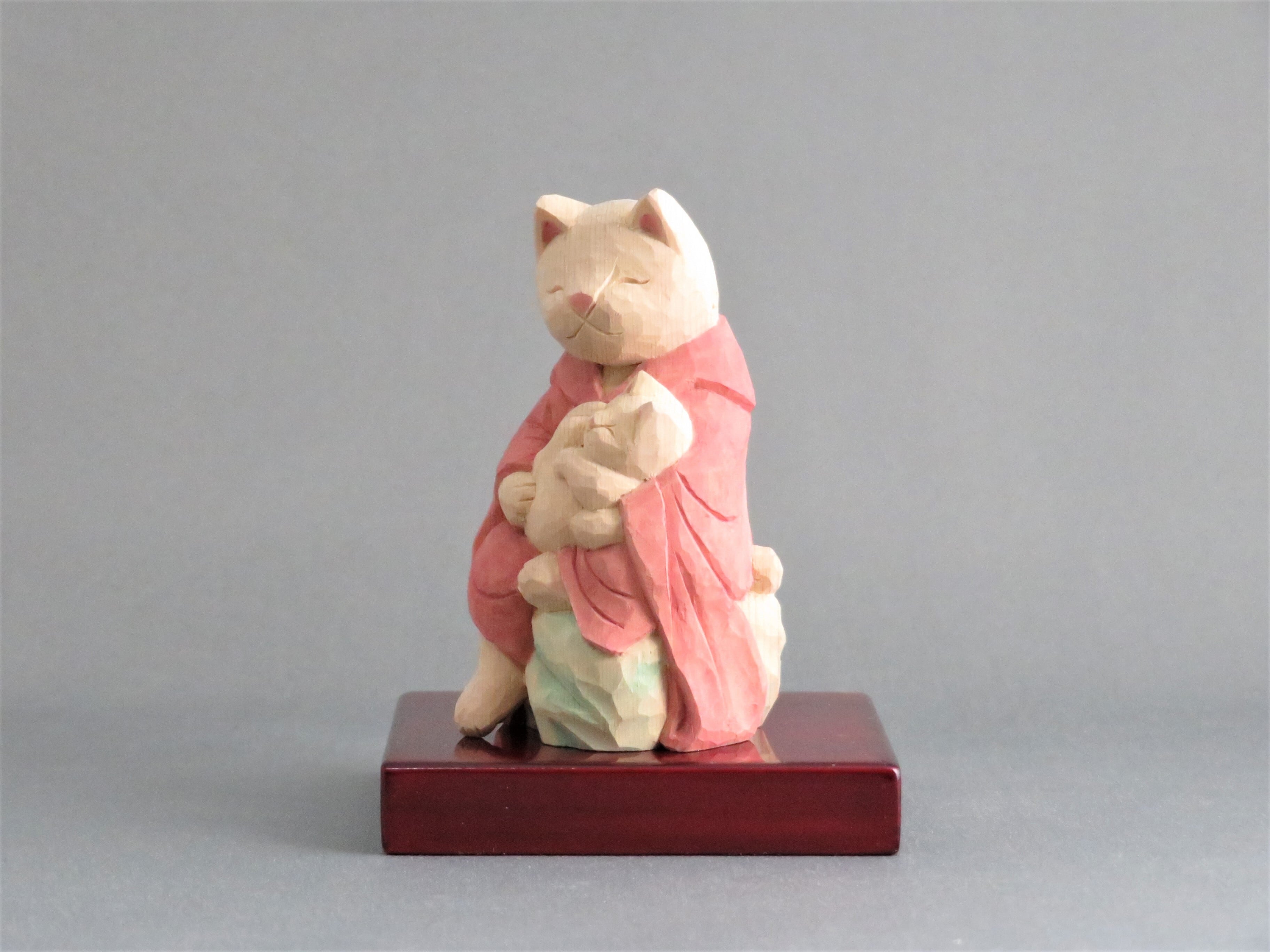 彫刻刀で丁寧に仕上げた後、木肌が見える程度に彩色をしております。