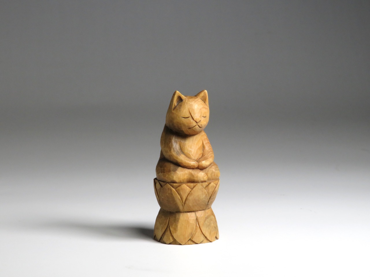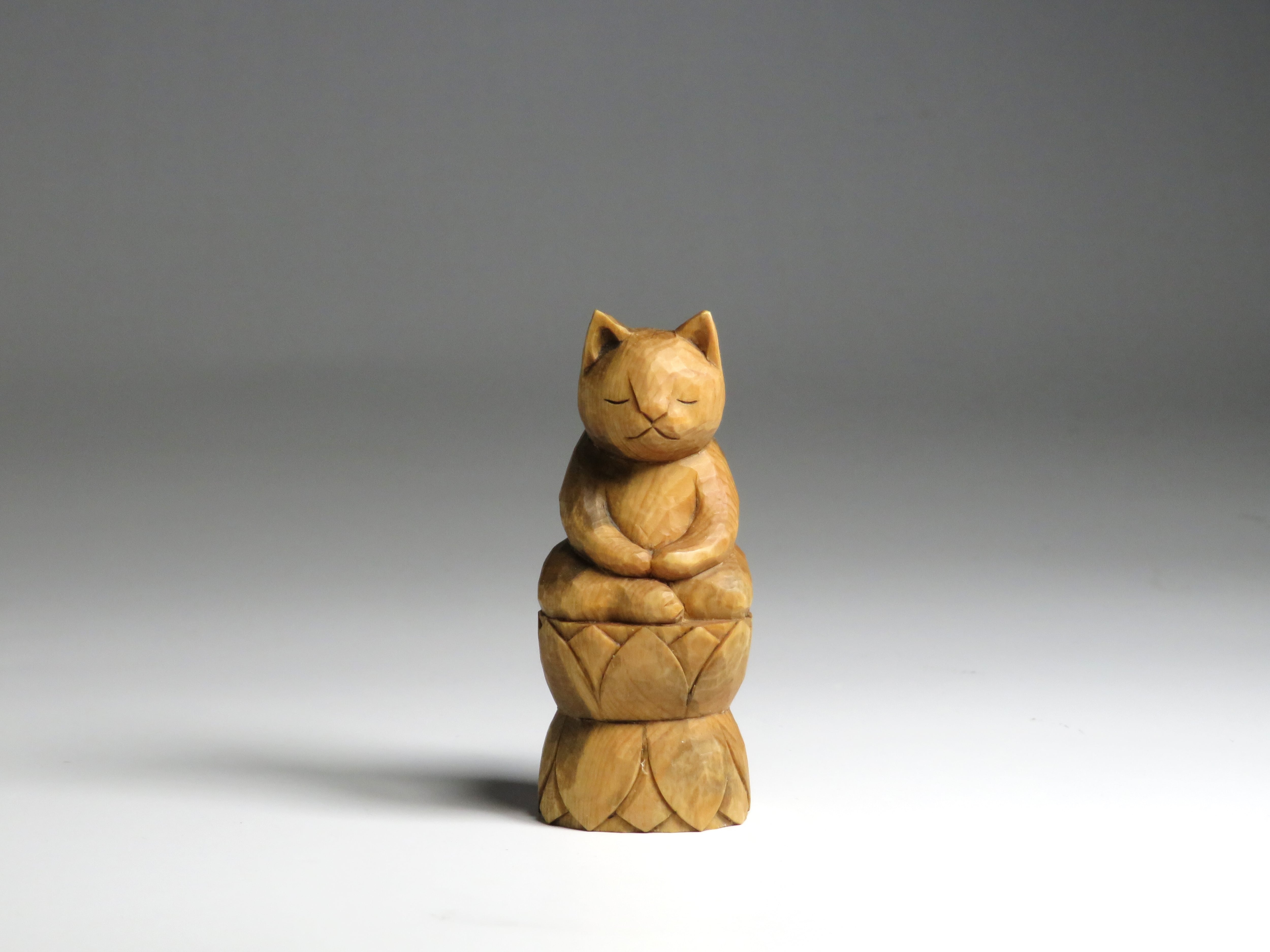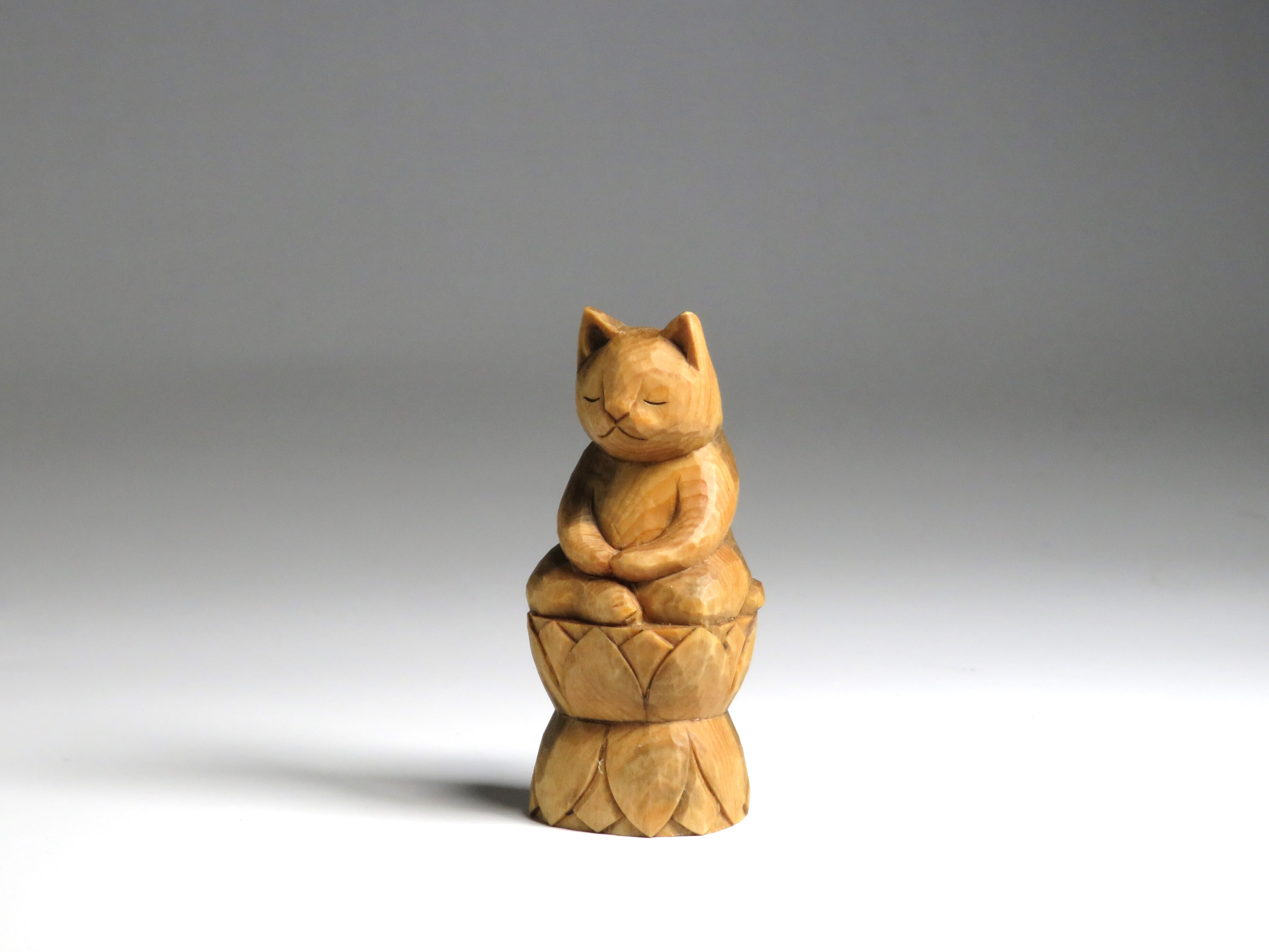 木彫り 座禅猫 蜜蝋仕上げ 猫仏1715